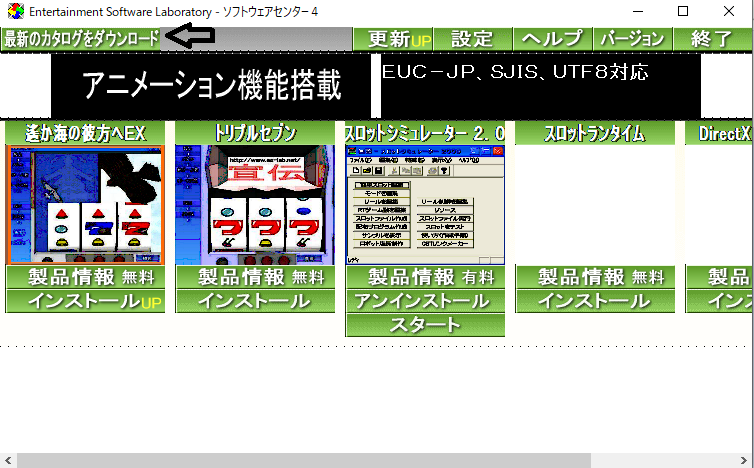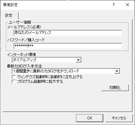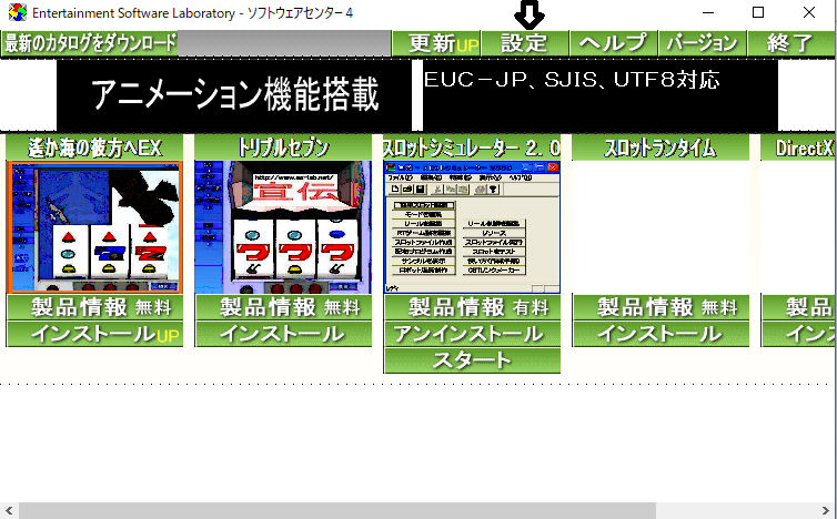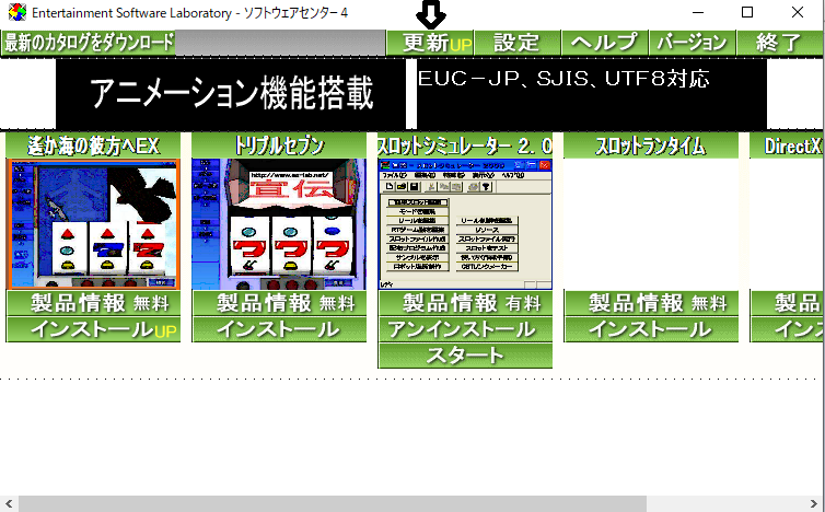 ![]() 1.ソフトウェアセンターを起動します。 ![]() 2.「最新のカタログをダウンロード」ボタンを押す。 ![]() 3.「更新」ボタンの横に「UP」と書かれている場合、「更新」ボタンを押してから更新後に起動してください。 ![]() 4.設定ボタンを押します。 ![]() 5.メールアドレス欄に購入時に登録した「メールアドレス」を入力して下さい。 6.パスワードの欄に、購入時に登録した「会員パスワード」を登録して下さい。 ※古いユーザーの方は、「購入コード」が「会員パスワード」になります。 7.OKボタンを押して下さい。 ※ショップからソフトウェアを購入し、代金をお支払い頂いた後、ご利用案内が届いた後から購入したソフトウェアをインストールすることが出来ます。