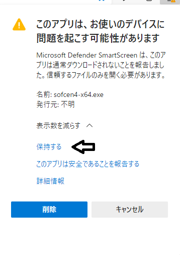 Windows 10へのインストール手順。 1.旧バージョンのソフトウェアセンターをアンインストール。 旧バージョンのSoftware Centerを既にインストールしている場合、前もって削除すると、安全にインストールすることが出来ます。 2.ソフトウェアセンターをダウンロード サーバーからソフトウェアセンターをダウンロードする方法を紹介しています。 3.ソフトウェアセンターをインストール インストールすることにより、パソコンで利用できるようになります。 4.ソフトウェアセンターの設定 メールアドレスとパスワードを設定する方法を説明しています。 ソフトウェアセンターをダウンロード手順 1.まず、使用しているウィンドウズに適切なプログラムを、次の中から選んでダウンロードしてください。 32ビット版をダウンロード 64ビット版をダウンロード ![]() 2.マウスカーソルを矢印の場所へ移動して下さい。 ![]() 3.3つの点の部分を押して下さい。 ![]() 4.「保存」を選択して下さい。 ![]() 5.「詳細表示」を押して下さい。 ![]() 6.「保持する」を選択して下さい。 ![]() 7.「ファイルを開く」を選択して下さい。 ![]() 8.「詳細情報」を選択して下さい。 ![]() 9.「実行」を選択して下さい。 ![]() 10.「はい」を選択して下さい。 ソフトウェアセンターのインストール画面が現れます。 ソフトウェアセンターをインストールへ進んでください。 ソフトウェアセンターをインストール ![]() 1.図のウィンドウが現れます。 内容をよく読み、「次へ」ボタンを押して下さい。 ![]() 2.使用条件をよく読み、同意して頂けた場合、「同意する」ボタンを押した後、「次へ」ボタンを押して下さい。 ![]() 3.内容をよく読み、「次へ」ボタンを押して下さい。 ![]() 4.インストールが始まります。 ![]() 5.インストール作業が終了した場合、図のウィンドウが現れます。 「次へ」ボタンを押して下さい。 ![]() 6.「完了」ボタンを押して下さい。 ソフトウェアセンターの設定へ進んでください。 ソフトウェアセンターの設定 ![]() 1.デスクトップに図のアイコンが現れたと思います。 実行すると、ソフトウェアセンターが起動します。 ![]() 2.図のようにソフトウェアセンターが起動したら、設定ボタンを押してください。 ![]() 3.図のウィンドウが現れます。 メールアドレスとパスワードを入力してください。 ※メールアドレスとパスワードは、ショップでソフトウェアを購入するときに登録します。 4.OKボタンを押して下さい。 ![]() 図のウィンドウが現れたならば、次のフリーソフトをインストールしてみましょう。 1.スロットランタイムをインストールし、「遥か海の彼方へ」をインストールする。 2.トリプルセブンをインストールする。 本物のスロットをしたい方は、いい練習になると思います。 特に「遥か海の彼方へ」は、サーバーで設定を変更することが出来ますので、練習には適しています。